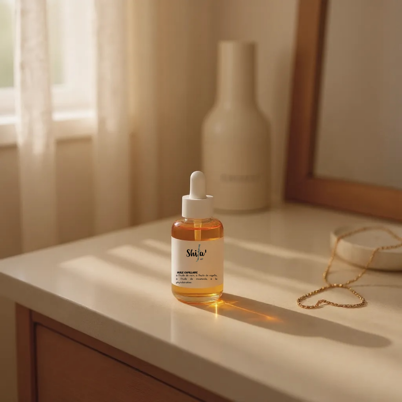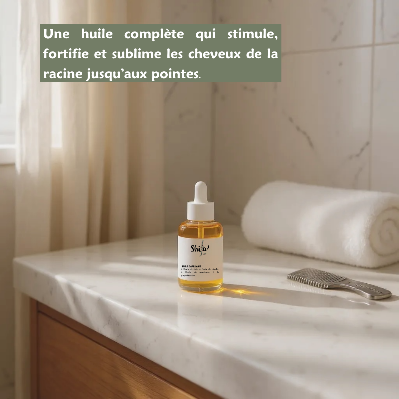 Cette huile capillaire naturelle nourrit, fortifie et redonne éclat aux cheveux secs ou abîmés, pour une chevelure visiblement plus saine, douce et revitalisée.